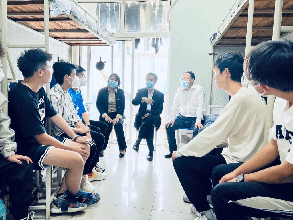 9月26日晚、28日上午、28日下午,副校长覃彩芹带领相关部门负责人来到化材考研自习室、实验室、学生寝室、学工会议室,和化材师生进行了亲切的交流,倾听他们在学习、生活和工作中遇到的困难和问题,肯定他们的表现,并送上国庆的祝福,鼓励他们继续保持良好的心态,立足岗位,做好本职工作,以实际行动迎接党的二十大胜利召开!
