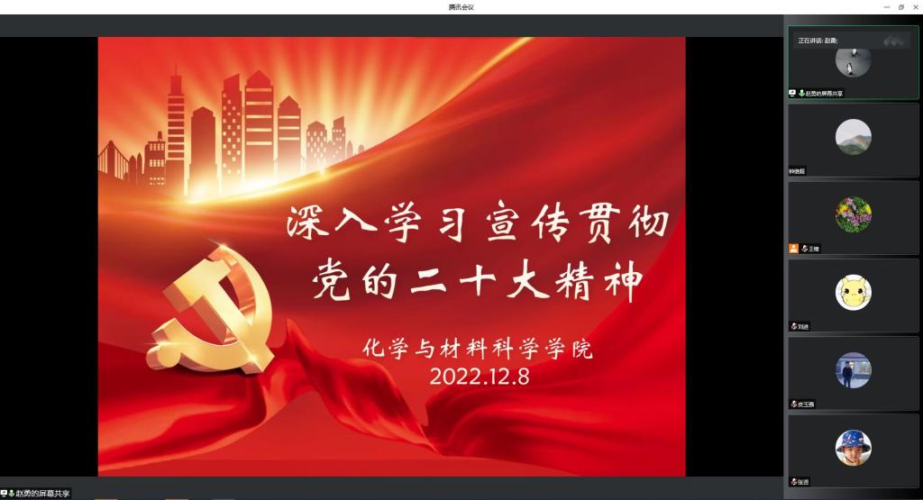 院长王锋结合学习内容及学校工作实际和近期重点工作,强调了相关要求。他说,全院教职员工要以党的二十大精神为指引,不忘初心、牢记使命,心怀“国之大者”,始终忠于党和人民的教育事业;坚持以学促用、以知促行,推动党的二十大精神入脑入心;全面贯彻党的教育方针,落实立德树人根本任务;坚持严的基调,强化正风肃纪;加强内涵建设,持续提升人才培养质量,全力谱写我院发展新篇章,以时不我待、只争朝夕的奋斗姿态,为把我校建设成为工程教育卓越、办学特色鲜明的国内应用型一流大学贡献化材力量!