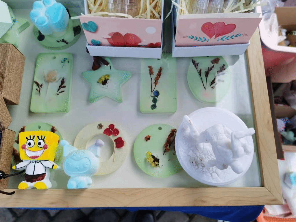 “奉献、友爱、互助、进步”是同学们一直秉持的信念。他们充分发挥自己的专业特长,在实验室自制爱心义卖物品:洗手液、空气清新剂、驱蚊剂、手工皂、口红,石膏娃娃工艺品等。路过的市民看着这些同学们自制的爱心义卖物品感慨道:“真好看,我也要买!”